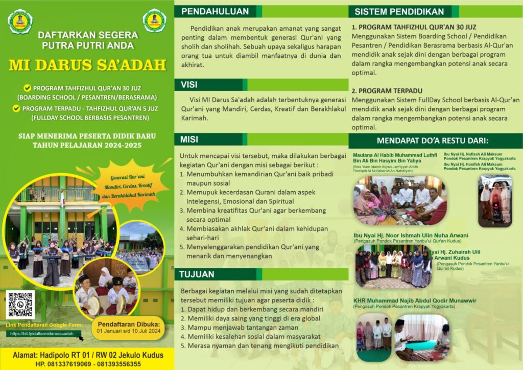 Informasi selengkapnya dan pendaftaran MI Darus Sa'adah